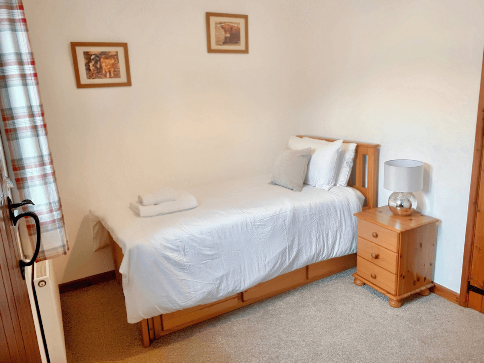 This cottage offers one double bed and one captain’s bed with pull out guest bed, making Delphy ideal for couples, families with children or three adults. The bathroom features a shower above the bath.